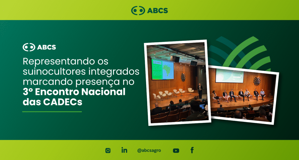 Representando os suinocultores integrados, a Associação Brasileira de Criadores de Suínos (ABCS) marcou presença no 3º Encontro Nacional das CADECs de Aves e Suínos, promovido pela Confederação da Agricultura e Pecuária do Brasil (CNA). O encontro ocorreu nos dias 18 e 19 de novembro, em Brasília, e reuniu mais de cem participantes entre produtores, dirigentes estaduais das CADECs e representantes das Federações Estaduais de Agricultura e Pecuária.